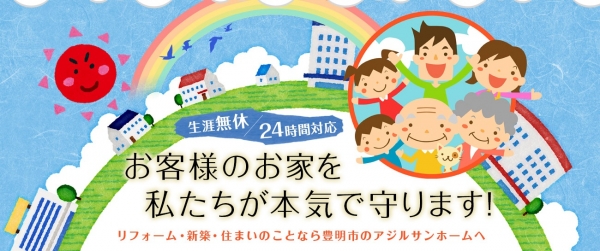 アジルサンホームは地域の皆さまのお家を本気でお守りいたします。