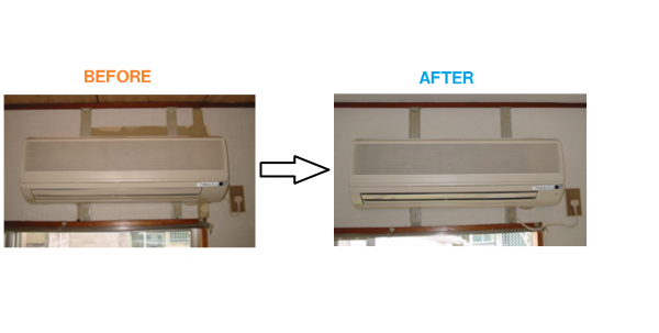 写真はエアコンを取り替えた際に、下地が出てしまった部分を補修したものです。