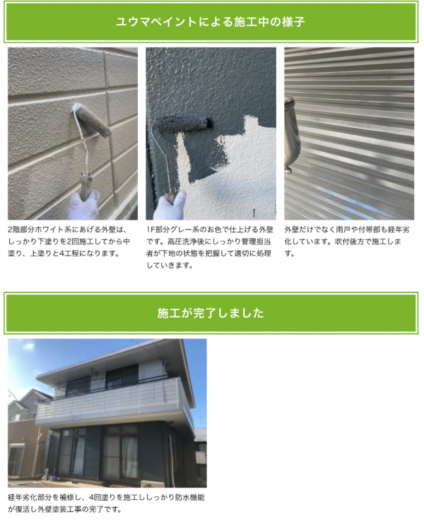 また、ただ「塗装して終了」ではなく、塗料のグレードに応じた施工店保証や定期点検を実施。万が一の異常が見つかった場合は、責任を持って補修や塗り直しなどのご対応を2008年の創業時から行い続けてきました。