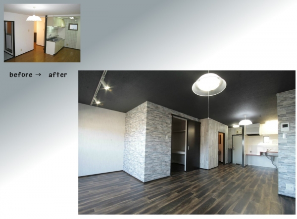 2DKの間取りだったお部屋を1ルームにリフォーム、
