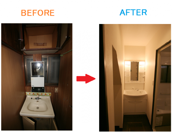 洗面所は窓をつぶし、大きな洗面ボウルのある洗面台に取り替えました。