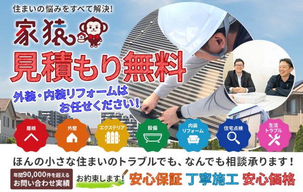 ハウスエムでは、屋根の点検・修繕をはじめ、住宅診断・床下点検、内装リフォーム、設備などお客様がより安心して過ごせるよう、住宅に関する様々なサポートを全般に行っています。 弊社は鍵、水回りなど生活トラブルを日本全国365日対応する専門業者として10年以上の実績がございます。 大阪を中心に兵庫、京都、奈良、和歌山のお仕事も対応していますのでまずはお気軽にご相談ください。