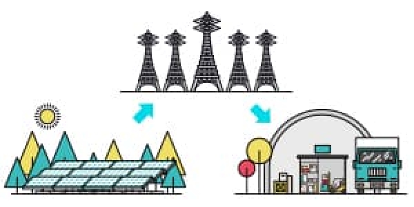自ら再エネ電力を生み出し、それを事業活動に使う「自家発電・自家消費」。私たち和上ホールディングスが推進するものがこちらの方法です。野立ての発電設備だけでなく、工場や倉庫、会社の屋根に太陽光パネルを設置するケースも多く見られます。