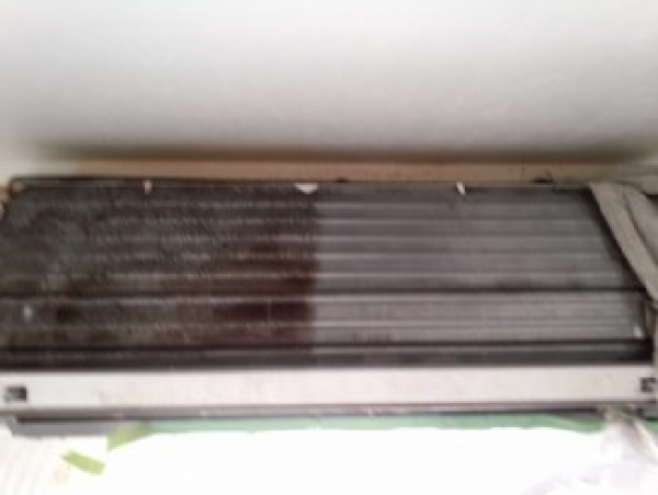 半分だけ洗浄したところです。分解洗浄でこんなにも綺麗になるんです!!