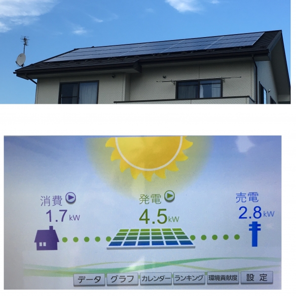 驚くことに、310×15枚=4.65kwhの設置で、晴れの日は、絶対といってよい、あり得ない数字の4.5kwhの数字の発電があります!!