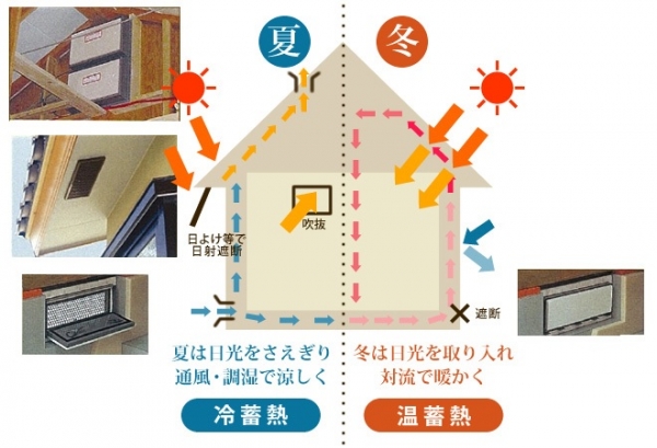 夏は屋内の通風とともに、北側地表面の涼しい空気を取り入れ、