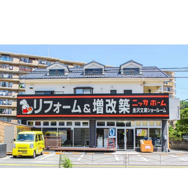 横浜金沢ショールームは国道16号線沿いに店舗を構え、京浜急行「金沢文庫駅」へ向かう列車内からも見える立地にあります。 地域1番店を目指し、地域密着した対応で平素よりご愛顧頂き、小さな工事から大規模な改装工事を含めて、年間約800件の工事のご依頼を頂いております。 日々様々なお客様と出会い、お悩み事を一つでも多く解消することを目標とし、横浜金沢ショールームスタッフ一同、笑顔と満足頂けるよう全力でご対応させて頂いております。 店舗敷地内にはお客様用駐車場もご用意させて頂いておりますので、お車でのご来店も可能です。 また、広く落ち着いた雰囲気の店舗内ショールームは、ゆっくりとご相談頂けるスペースとなっています。 リフォームをお考えのお客様は是非、お気軽にニッカホーム横浜金沢ショールームへお立ち寄りください。
