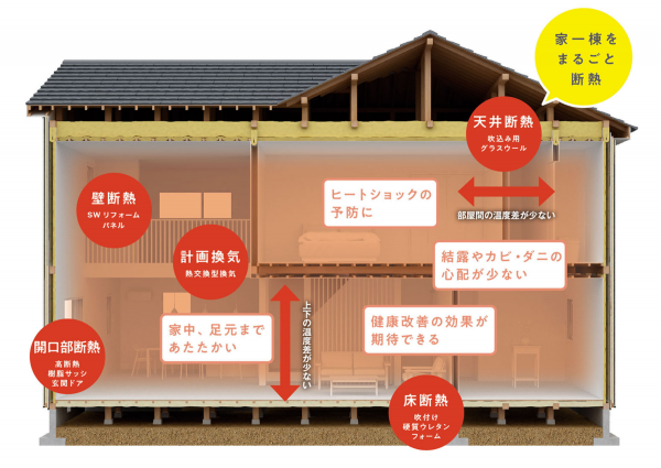スーパーウォール工法リフォーム 今のお住まいを新築同様の暖かさに!家のどこにいても、足元まで暖かい「快適」「健康」「省エネ」を実感できる暮らしをご提案いたします。